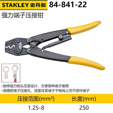 Клещи Stanley для обжима клемм, электрики, клещи для клемм холодного прессования, прочные клещи для обжима клемм, 1,25–8 мм² 84-841-22