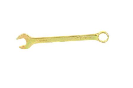 Ключ изготовлен из углеродистой стали (требования ГОСТ 4146 HRc). Покрытие. Профиль кольцевого зева имеет 12 граней, что увеличивает площадь соприкосновения рабочих поверхностей и снижает риск деформации граней крепежа при монтаже. Угол наклона кольцевого зева относительно плоскости ключа в 15 градусов делает монтаж более удобным. Ключ гаечный комбинированный с открытым и кольцевым зевом предназначен для монтажа демонтажа резьбовых соединений.