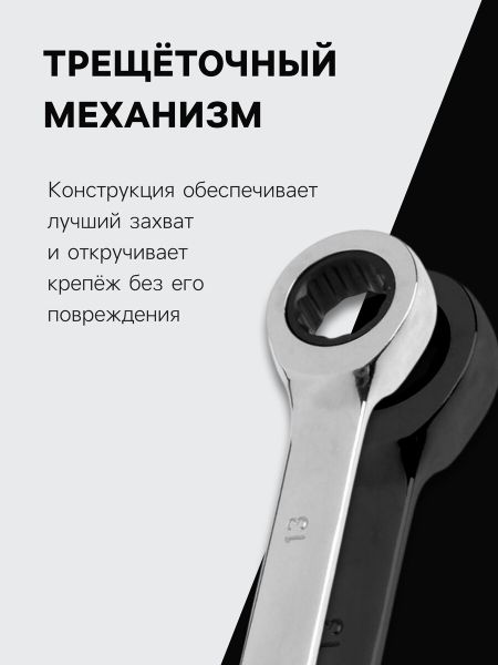 Ключ комбинированный трещоточный ТУНДРА, CrV, полированный, 72 зуба, 10 мм. Ключ комбинированный трещоточный ТУНДРА предназначен для монтажных и демонтажных работ с резьбовым соединением. Ключ имеет две накладные головки: рожковую и трещоточную. Благодаря трещоточной головке с 72 зубьями увеличивается крутящий момент и возможные углы работы с крепежом. Корпус инструмента изготовлен из хромованадиевой стали, что обеспечивает ключ стойкостью к большим нагрузкам.