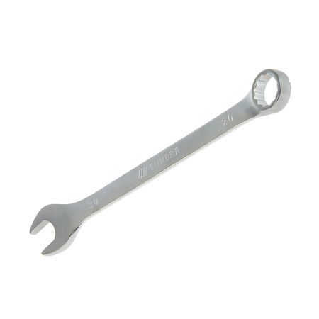 Ключ комбинированный ТУНДРА, CrV, матовый, 20 мм. Ключ комбинированный ТУНДРА предназначен для монтажных и демонтажных работ. Ключ имеет две накладные головки: рожковую и накидную, благодаря которым появляется возможность работы с крепежом сверху и сбоку. Корпус инструмента изготовлен из хромованадиевой стали, что обеспечивает ключ стойкостью к большим нагрузкам.