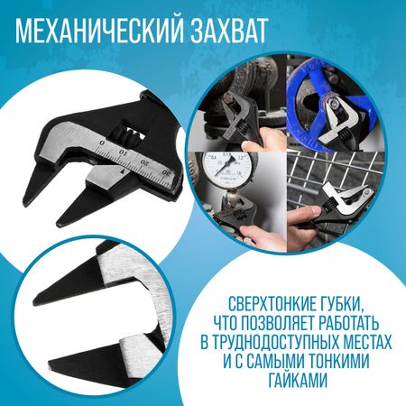 Ключ разводной с очень тонкими губками ТУНДРА, 2К рукоятка, толщина 2.5 мм, до 34 мм, 150 мм. <em> Идеальный инструмент для точных задач!</em> <strong> Разводной ключ с тонкими губками</strong> – это универсальный инструмент для работы в труднодоступных местах. С длиной 150 мм и толщиной губок 2.5 мм, он обеспечивает удобство и точность при выполнении различных задач. <ul> <li> <strong> Универсальность:</strong> Подходит для работы с гайками и болтами в труднодоступных местах, что делает его незаменимым в различных ситуациях.</li> <li> <strong> Удобство использования:</strong> Двухкомпонентная рукоятка обеспечивает комфортный хват, снижая утомляемость рук при длительной работе.</li> <li> <strong> Точность:</strong> Тонкие губки позволяют работать с деталями до 34 мм, обеспечивая высокую точность захвата.</li> </ul> <strong> Практичность и надежность:</strong> Разводной ключ с тонкими губками обеспечивает высокую точность при работе с гайками и болтами. Он подходит для профессионалов и любителей, обеспечивая надежное выполнение задач. С этим инструментом вы сможете быстро и легко справляться с различными задачами. Разводной ключ с тонкими губками – это надежный выбор для тех, кто ценит качество и удобство.