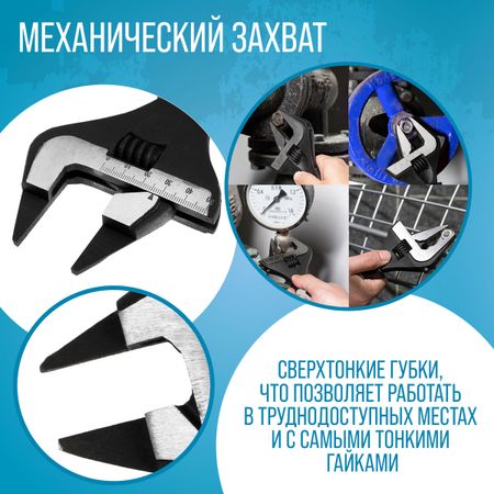 Ключ разводной с очень тонкими губками ТУНДРА, 2К рукоятка, толщина 3.5 мм, до 50 мм, 250 мм. <em> Идеальный инструмент для точных задач!</em> <strong> Разводной ключ с тонкими губками</strong> – это универсальный инструмент для работы в труднодоступных местах. С длиной 250 мм и толщиной губок 3.5 мм, он обеспечивает удобство и точность при выполнении различных задач. <ul> <li> <strong> Универсальность:</strong> Подходит для работы с гайками и болтами в труднодоступных местах, что делает его незаменимым в различных ситуациях.</li> <li> <strong> Удобство использования:</strong> Двухкомпонентная рукоятка обеспечивает комфортный хват, снижая утомляемость рук при длительной работе.</li> <li> <strong> Точность:</strong> Тонкие губки позволяют работать с деталями до 50 мм, обеспечивая высокую точность захвата.</li> </ul> <strong> Практичность и надежность:</strong> Разводной ключ с тонкими губками обеспечивает высокую точность при работе с гайками и болтами. Он подходит для профессионалов и любителей, обеспечивая надежное выполнение задач. С этим инструментом вы сможете быстро и легко справляться с различными задачами. Разводной ключ с тонкими губками – это надежный выбор для тех, кто ценит качество и удобство.