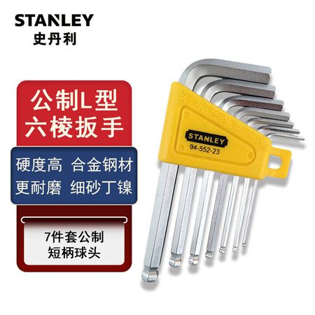 Ключ шестигранный Stanley Г-образный, шестигранная дюймовая отвертка, набор из 7 предметов, шаровая головка с короткой метрической ручкой