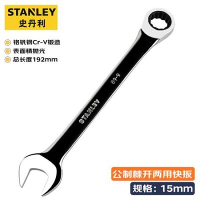 Ключ Stanley с быстрой трещоткой, метрический, полированный, открытый, двуцелевой, со сливным отверстием 15 мм 89-915-1-22