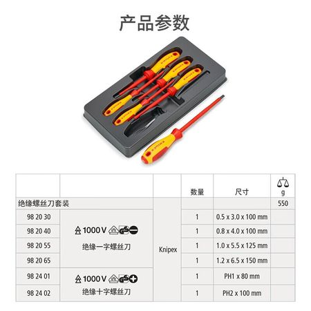 KNIPEX 002012V01 Набор изолированных отверток Набор крестовых отверток для электриков высокой твердости