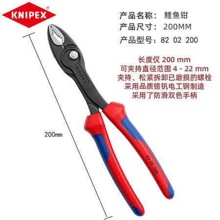 KNIPEX 82 02 200 регулируемые плоскогубцы для карпа, плоскогубцы с двухцветной ручкой, плоскогубцы для рыбьего рта, многофункциональные плоскогубцы для ремонта автомобилей, 200 мм