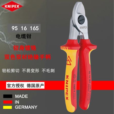 KNIPEX 9516165 кусачки для изолированного кабеля, импортированные из Германии, легко режут изолированное хромированное покрытие