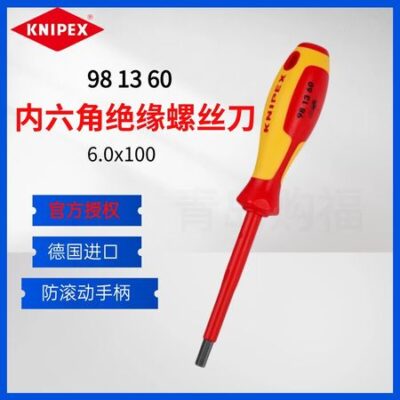 KNIPEX 981360 электроизоляционная шестигранная отвертка с плоской головкой, промышленная отвертка, внутренняя шестигранная отвертка 6,0*100