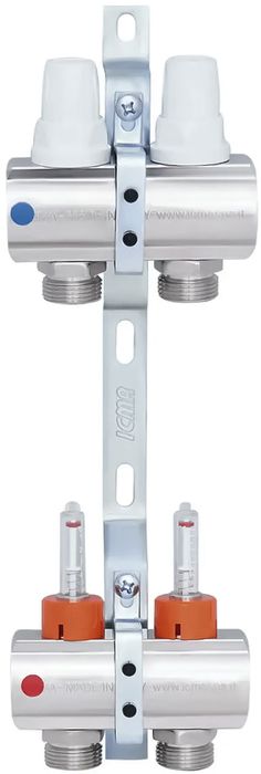 Коллектор с расходомерами ICMA (ИКМА) 1″ 104 mm (87K013PG06) обеспечивает подключение двух контуров системы теплого пола. В комплект поставки входят все необходимые аксессуары для подключения и установки изделия. Расход воды может настраиваться в пределах от 0 до 4 литров в минуту, что обеспечивает широкий спектр использования.