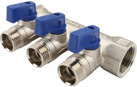 Коллектор распределительный TIEMME (ТИММЕ) 3/ 4″x1/2 на 3 выхода, никель, с наружной резьбой с тремя шаровыми кранами NINO используются в системах водоснабжения, в том числе, горячего. Латунный корпус покрыт никелем, что значительно повышает его устойчивость к повреждениям и воздействиям внешней среды.