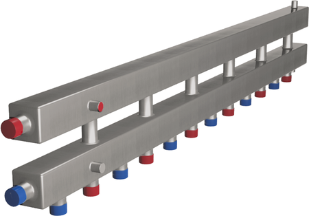 RISPA (Риспа) КМГ60-7ВН НЕРЖ. — коллектор из нержавеющей стали 304 марки. Основная задача — распределить теплоноситель для семи потребителей. При необходимости, изделие может быть интегрировано с системами управления и автоматизации, что упрощает мониторинг и выявление потенциальных аварийных ситуаций.