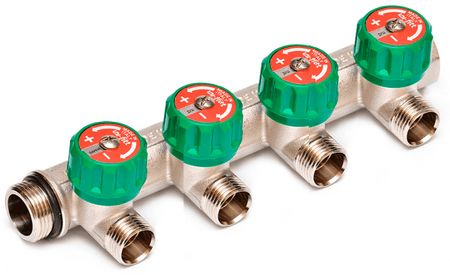 Итальянские коллекторы серии 410N оборудованы двумя, тремя и четырьмя отводами с запорно-регулирующими вентилями. Арматура изготовлена из никелированной латуни и обладает высокой коррозионной стойкостью. Коллекторы можно соединять между собой, чтобы получить нужное количество отводов. Уплотнитель O-Ring обеспечивает надежность и герметичность соединения.
