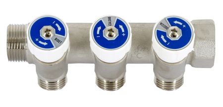 Коллектор Uni-Fitt (Уни-Фит) НВ 3/4×3 вых 3/4 ЕК 40 мм с вентилями, никелированный предназначен для распределения жидкости по контурам систем отопления и водоснабжения. Вентили на отводах позволяют вручную управлять потоками воды для каждого помещения. Уплотнитель из EPDM обеспечивает высокую герметичность арматуры.