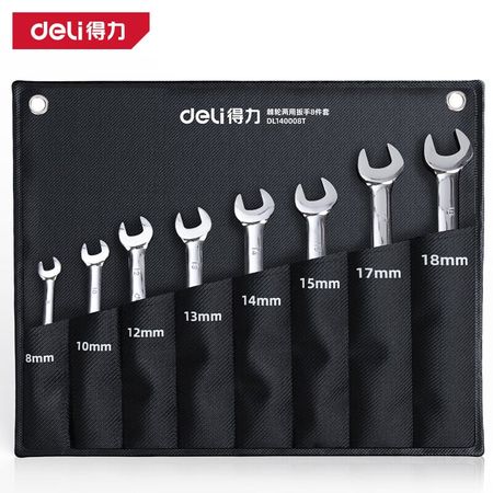 Комбинированный ключ с храповым механизмом Deli, набор из 8 предметов, рожковый ключ для цветка сливы DL140008T