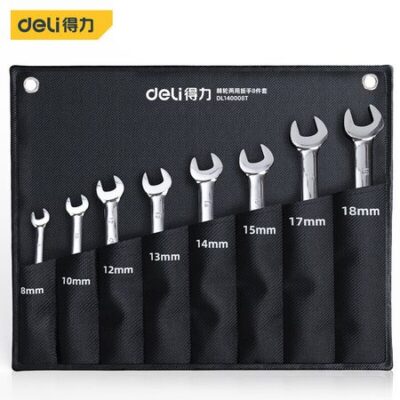 Комбинированный ключ с храповым механизмом Deli, набор из 8 предметов, рожковый ключ для цветка сливы DL140008T