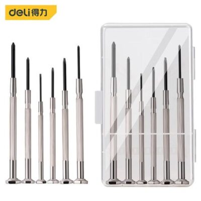 Комбинированный набор прецизионной маленькой крестовой отвертки Deli для разборки ноутбука, часов, ремонта очков DL3206, набор из 6 предметов, металлическая ручка, серебро, 1 комплект