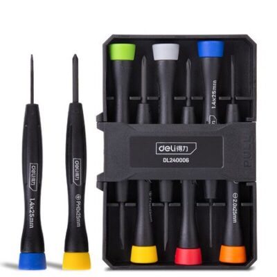 Комбинированный набор прецизионных маленьких крестообразных отверток Deli из 6 предметов. Отвертка для разборки ноутбука, ремонта часов и очков. Биты из радужной хром-ванадиевой стали DL240006 (2 комплекта)