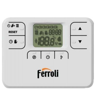 Комнатный терморегулятор Ferroli ROMEO N RF отличается простотой использования и крайне понятным и информативным дисплеем. На нем отображаются не только стандартные параметры режим работы и время, но так же уровень мощности, дата, информация о неполадках, температура снаружи и внутри помещения. Регулятор оснащен защитой от замерзания и блокировки насоса. Данная модель обладает беспроводным подключением.