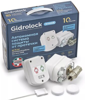 Производитель Gidrolock представляет серию «Winner» — комплекты для защиты от протечек воды в различных системах водоснабжения и отопления. Электроприводы и надежные шаровые краны позволяют практически полностью предотвратить ущерб от внештатных ситуаций. Дополнительные беспроводные датчики. Надежность и безотказность системы гарантирована производителем.