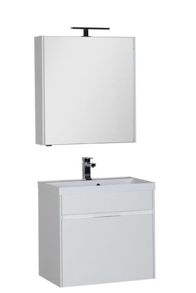 Среди достоинств комплекта также хромированные ручки ящиков и глубокая прямоугольная раковина из литьевого мрамора, что очень актуально для современных интерьеров. Белое глянцевое покрытие «Латины» соответствует представлениям о чистоте и здоровье и гармонирует с белизной ванны, кабины или душевого уголка в ванной комнате. Мягкое, в то же время достаточное по силе освещение создают экономичные внешние светильники.