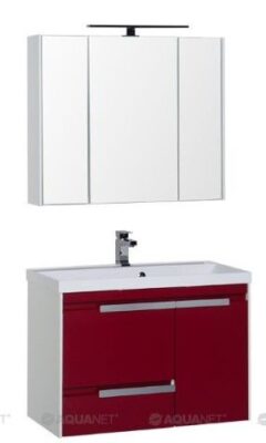 Тумба: Aquanet Тиволи 90, цвет белый (фасад бордо), 2 выдвижных ящика, 1 распашная дверца (180059)