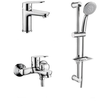 Комплект смесителей 3 в 1 Ledeme L9030, представленная модель позволит легко контролировать напор и температуру воды, при помощи однорычажного управления. Аэратор в смесителях обеспечит равномерный поток воды, благодаря тому, что специальная металлическая сеточка рассеивает напор, вода смягчается. Сеточка поможет отфильтровать примеси и позволит сэкономить свыше 5 кубометров воды в год. Монтируется на стене с целью подсоединения подводки из стены. Конструкция приборов на шпильке подразумевает их монтаж в специальное отверстие с помощью креплений. Обычно применяются две шпильки, зажимаемые винтами с обратной стороны умывальника или раковины. Смеситель выполнен в новом современном стиле, оригинальная модель в ярко выраженном дизайнерском исполнении. Материал в приборе — латунь, это надежный красивый материал, который обеспечивает отличное напыление хромированного покрытия. Один из традиционных вариантов оформления сантехнического смесителя. Округлая форма помогает прибору выглядеть максимально стильно и привлекательно для глаз человека. Данный тип смесителей обладает стационарным изливом, который не меняет положение в пространстве. По причине своей простоты и проверенной надежности модели очень популярны в наше время. У подобных смесителей переключение подачи воды на душевой шланг или излив производится с помощью поворота рычага, вынесенного на переднюю панель. Монтаж данной модели производится на три отверстия. В комплекте идет, инструкция по установке, гарантийный талон, душевая лейка , держатель лейки , комплект эксцентриков , комплект отражателей.