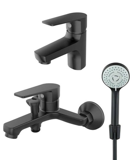 Набор смесителей для ванной комнаты Loop от немецкой компании Orange – отличный выбор для современного интерьера. Латунное изделие устойчиво к коррозии и высоким температурам, а покрытие в цвете матовый черный делает незаметными разводы и высохшие капли. Керамический картридж обеспечивает долговечность изделия, стабильную подачу воды и мощный напор. Излив оснащен пластиковым аэратором, он создает ровную мощную струю и легко очищается от известкового налета. В комплекте душевой набор (душевая лейка d 90 мм 3 режима, шланг в металлической оплетке 1500 мм., настенный держатель лейки).