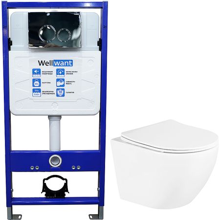 Комплект унитаза BelBagno Uno BB3105CHR/SC с инсталляцией WellWant Standart 50 WWISI1110B, с сиденьем Микролифт и клавишей смыва Хром глянцевый.