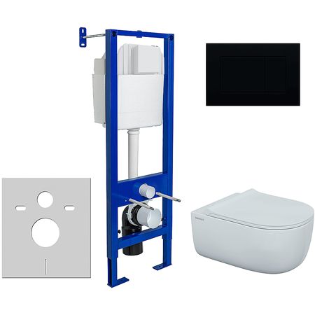 Комплект унитаза Berges Ego XL Rimless с инсталляцией Atom 043360 с сиденьем Микролифт и Черной SoftTouch клавишей смыва.