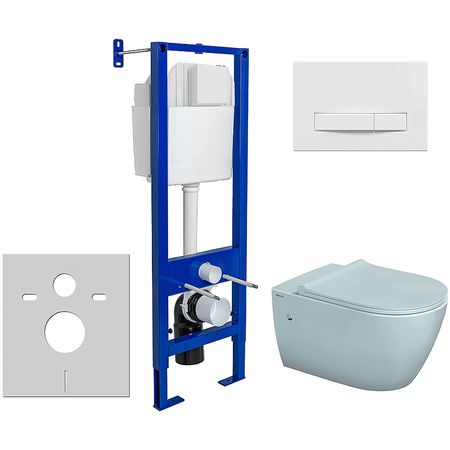 Комплект унитаза Berges Mascon Rimless с инсталляцией Atom Line 043352 с сиденьем Микролифт и Белой клавишей смыва