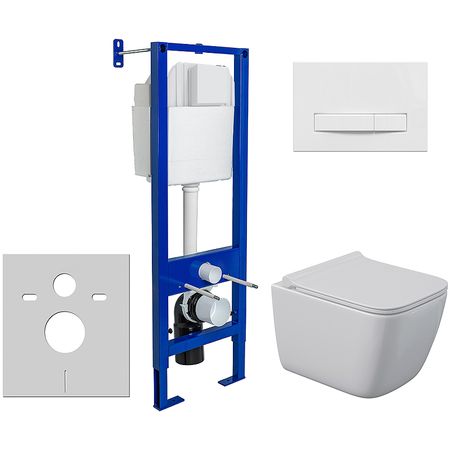 Комплект унитаза Berges Quattro S Rimless с инсталляцией Atom Line 043363 с сиденьем Микролифт и Белой клавишей смыва.