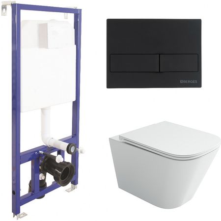 Комплект унитаза Ceramicanova Union CN4009T с инсталляцией Berges Novum L5 040215 с сиденьем Микролифт и Черной матовой клавишей смыва.