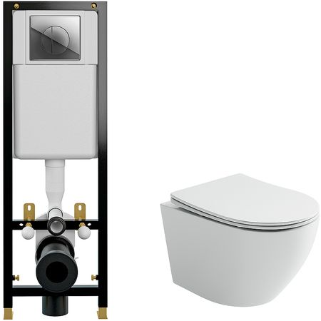 Комплект унитаза Ceramicanova Uno Rimless CN11001 с инсталляцией Cersanit Black 35 S-IN-BLACK-Cg-w с сиденьем Микролифт и клавишей смыва Хром.