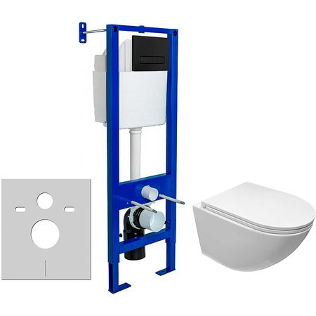 Комплект унитаза Ceruttispa B-2376-3 7183 с инсталляцией Berges Atom 410 040340 с сиденьем Микролифт и Черной матовой клавишей смыва