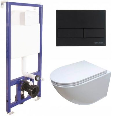 Комплект унитаза Ceruttispa B-2376-3 7183 с инсталляцией Berges Novum L5 040215 со смывным бачком, с сиденьем Микролифт и Черной матовой клавишей смыва.