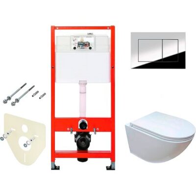 Комплект унитаза Ceruttispa B-2376-3 7183 с инсталляцией Tece Profil 9400412 со смывным бачком, с сиденьем Микролифт и клавишей смыва Хром глянцевый.
