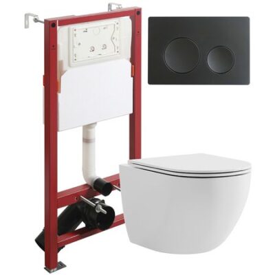 Комплект унитаза с инсталляцией Agger ATI03100+APB144 с сиденьем Микролифт и Черной матовой клавишей смыва.