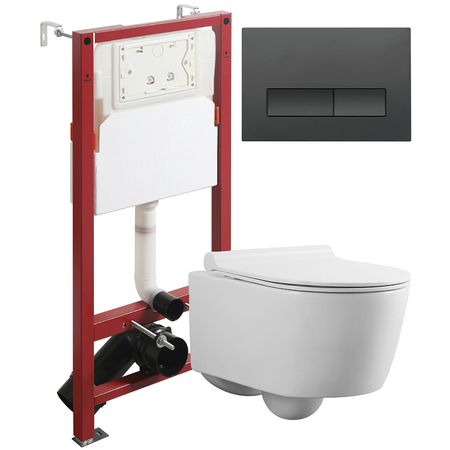 Комплект унитаза с инсталляцией Agger ATI05100+APB244 с сиденьем Микролифт и Черной матовой клавишей смыва.
