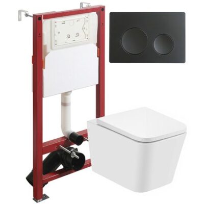 Комплект унитаза с инсталляцией Agger ATI08100+APB144 с сиденьем Микролифт и Черной матовой клавишей смыва.
