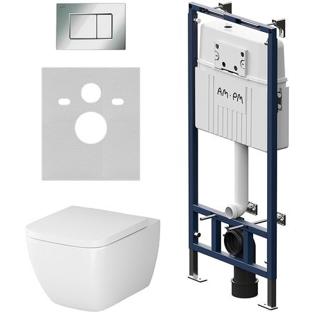 Комплект унитаза с инсталляцией AM.PM Gem FlashClean IS100251.901701 с сиденьем Микролифт и клавишей смыва Хром глянцевый.