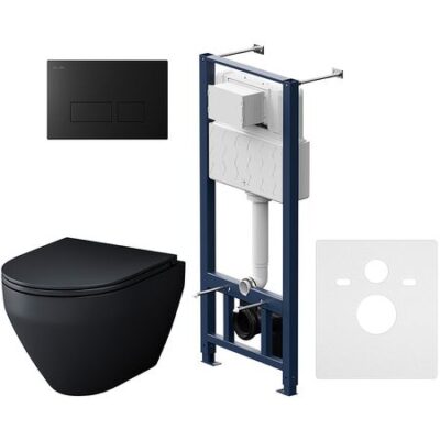 Комплект унитаза с инсталляцией AM.PM Spirit V2.0 FlashClean IS47038.701700MB с сиденьем Микролифт и Черной матовой клавишей смыва.