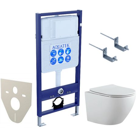 Комплект унитаза с инсталляцией Aquatek Set Aquatek Европа-KKI2 с сиденьем Микролифт и крепежом, без клавиши смыва..