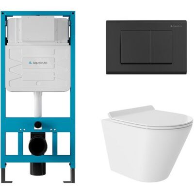 Комплект унитаза с инсталляцией Aqueduto Cone AQDS033T с сиденьем Микролифт и Черной матовой клавишей смыва.