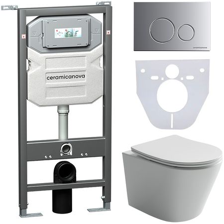 Комплект унитаза с инсталляцией Ceramicanova Balearica CN6000_1001M_1000 с сиденьем Микролифт и клавишей смыва Хром матовый.