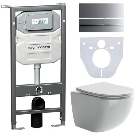 Комплект унитаза с инсталляцией Ceramicanova Forma CN3009_1002M_1000 с сиденьем Микролифт и клавишей смыва Хром матовый.