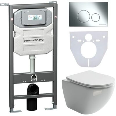 Комплект унитаза с инсталляцией Ceramicanova Metropol CN4002_1001CH_1000 с сиденьем Микролифт и клавишей смыва Хром глянцевый.