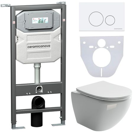 Комплект унитаза с инсталляцией Ceramicanova Metropol CN4002_1001W_1000 с сиденьем Микролифт и Белой клавишей смыва.