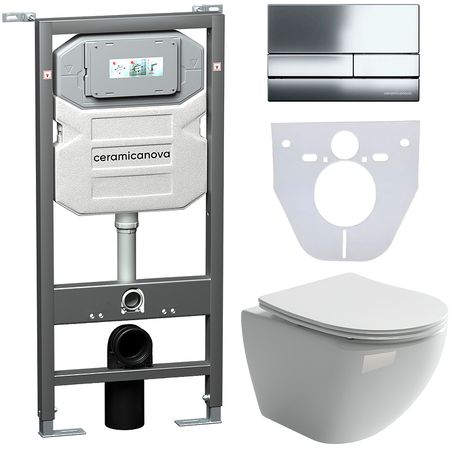 Комплект унитаза с инсталляцией Ceramicanova Metropol CN4002_1002CH_1000 с сиденьем Микролифт и клавишей смыва Хром глянцевый.