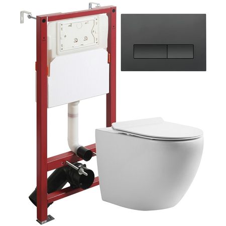 Комплект унитаза с инсталляцией Orange CI07-100W+APB244 с сиденьем Микролифт и Черной матовой клавишей смыва.