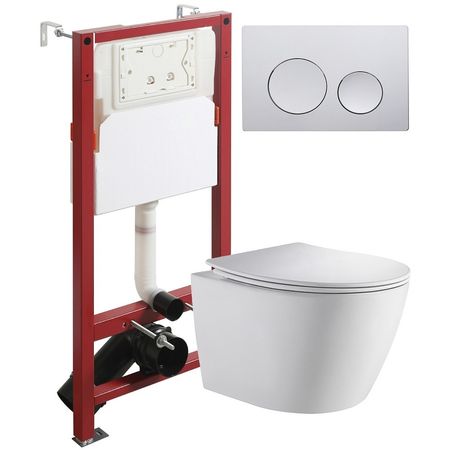 Комплект унитаза с инсталляцией Orange CI07-150W+APB100 с сиденьем Микролифт и клавишей смыва Хром глянцевый.